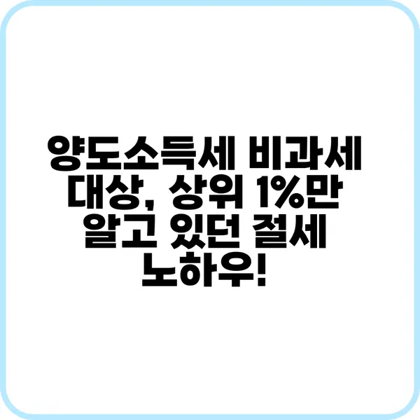 양도소득세 비과세 대상, 상위 1%만 알고 있던 절세 노하우!