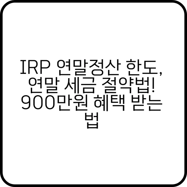 IRP 연말정산 한도, 연말 세금 절약법! 900만원 혜택 받는 법